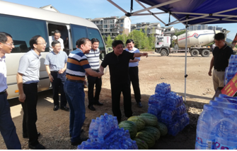 烈日下的八一大橋項(xiàng)目現(xiàn)場一片繁忙景象,工人們有的在支模、有的在焊接鋼筋、有的在澆筑砼,一切都井然有序,忙而不亂。屯溪區(qū)區(qū)委書記江善良一行一到現(xiàn)場,就將一件件防暑降溫慰問品遞到在施工的工人們手中,并囑咐在高溫下施工的操作人員要多注意休息、及時(shí)補(bǔ)充水分和營養(yǎng),按項(xiàng)目部要求合理安排工作時(shí)間,避免中午高溫時(shí)間段施工,同時(shí)要求項(xiàng)目部積極做好防暑降溫工作,保障施工一線工人的生命安全。充分體現(xiàn)了屯溪區(qū)委、區(qū)政府等領(lǐng)導(dǎo)對我集團(tuán)公司的一片深情厚誼和關(guān)懷。