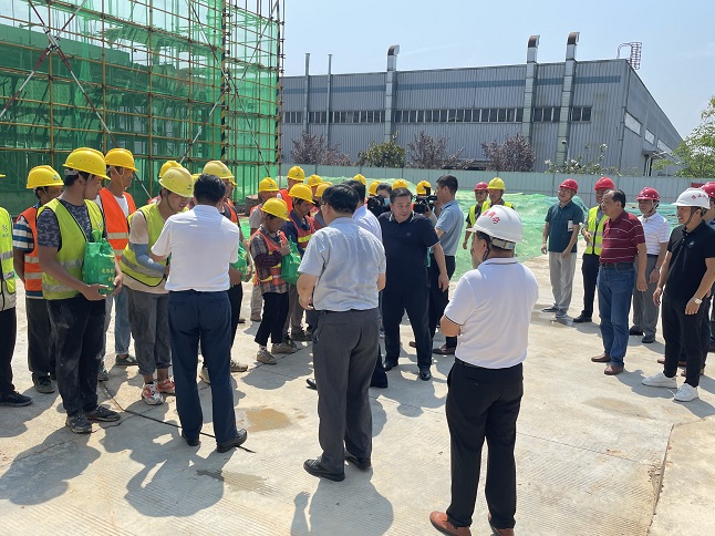 近日,黃山市天氣持續(xù)高溫酷熱,驕陽似火,黃山博盛消防裝備有限公司新廠區(qū)1-2#車間及研發(fā)中心工人仍堅(jiān)守在施工一線,頂烈日,搶工期。7月26日上午,屯溪區(qū)委書記吳旭光、區(qū)委副書記、區(qū)長楊林,區(qū)人大常委會主任朱學(xué)軍,區(qū)政協(xié)主席袁震宇,區(qū)政協(xié)副主席杜祖紅等一行深入工地現(xiàn)場,開展“送清涼進(jìn)工地”活動,看望慰問項(xiàng)目部一線職工。