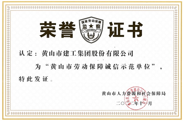 此次被評(píng)為“黃山市勞動(dòng)保障誠(chéng)信示范單位”是政府部門(mén)對(duì)集團(tuán)公司守法誠(chéng)信、合法用工的充分肯定。黃山市建工集團(tuán)股份有限公司將珍惜榮譽(yù),不忘初心,持續(xù)做好示范引領(lǐng)作用,積極構(gòu)建和諧的勞動(dòng)關(guān)系,加強(qiáng)合法用工意識(shí),促進(jìn)公司的平穩(wěn)健康發(fā)展。