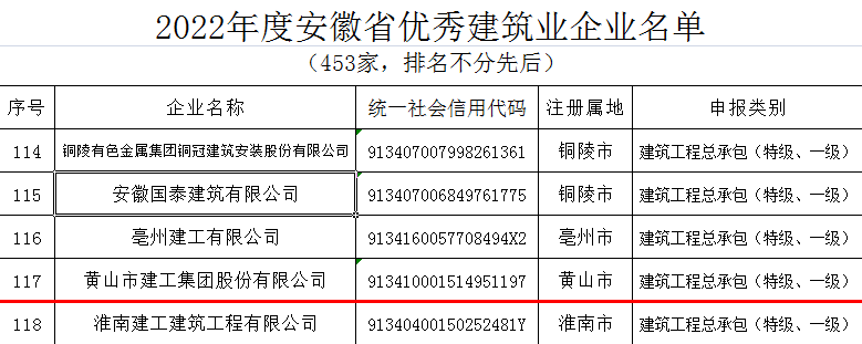 近日,安徽省住房和城鄉(xiāng)建設(shè)廳發(fā)布了“2022年度安徽省優(yōu)秀建筑業(yè)企業(yè)”名單,黃山建工集團(tuán)憑借企業(yè)經(jīng)營發(fā)展、管理創(chuàng)新能力、企業(yè)建造能力、企業(yè)文化建設(shè)、社會(huì)責(zé)任履行等方面的卓越表現(xiàn)再次名列榜單――建筑工程總承包類(特級、一級類別)省優(yōu)秀建筑業(yè)企業(yè),連續(xù)多年斬獲該項(xiàng)殊榮。