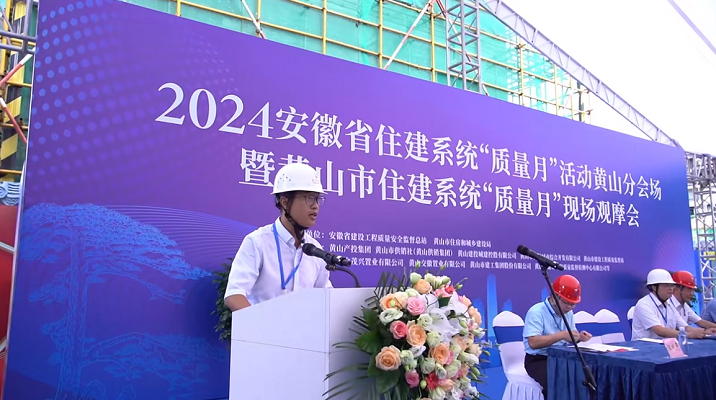 省質(zhì)量安全監(jiān)督總站站長(zhǎng)黃欣鄭重宣布:2024安徽省住建系統(tǒng)“質(zhì)量月”活動(dòng)黃山分會(huì)場(chǎng)暨黃山市住建系統(tǒng)“質(zhì)量月”現(xiàn)場(chǎng)觀摩會(huì)活動(dòng)啟幕。
