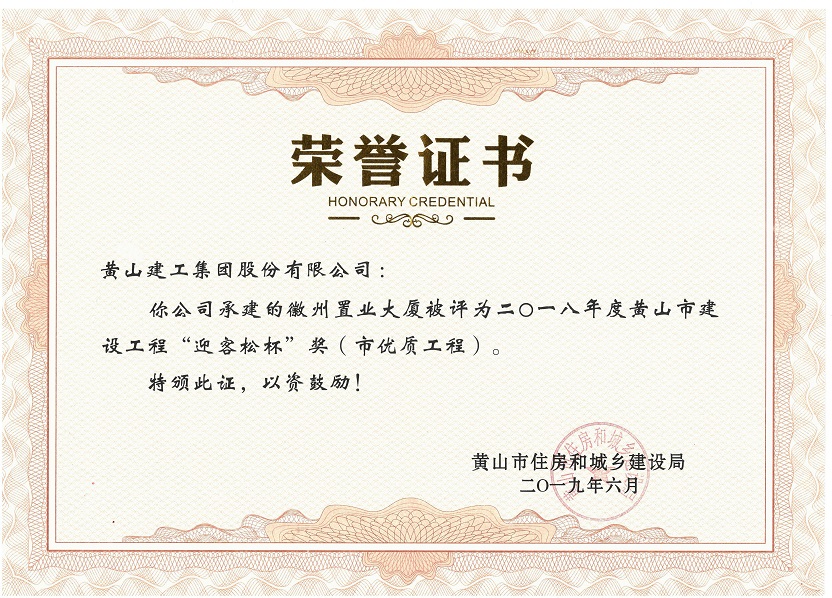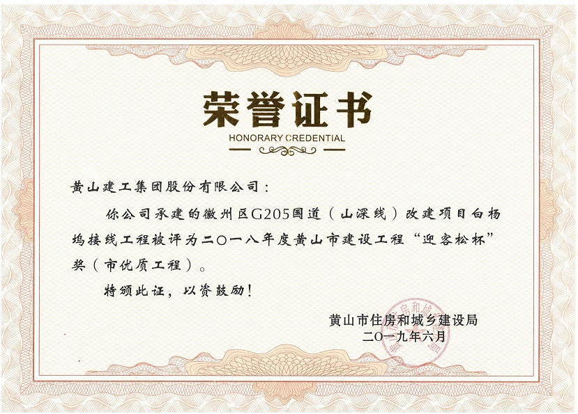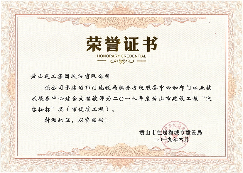 2019年度黃山市建設(shè)工程優(yōu)質(zhì)工程獎